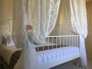 Lençóis italianos Frette e roupas de cama premium enfeitam todos os quartos desta casa de campo. Decoração cuidada, chuveiros de chuva e frigobares completam a experiência.