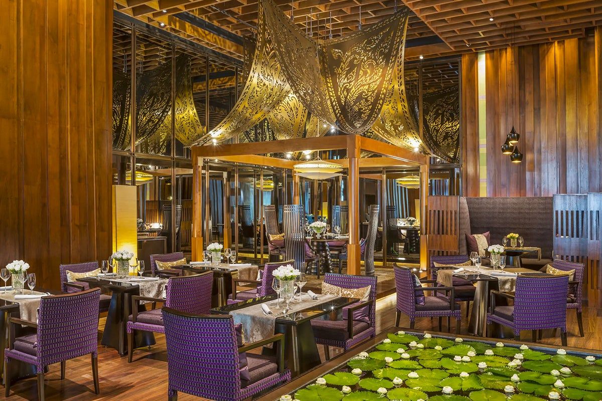 Sra Bua is a fine-dining restaurant that serves cutting-edge Thai cuisine, located on the ground floor of the ultra-luxe Siam Kempinski Hotel. Well-known Thai favourites have been turned inside out and every dish is a treat for the eyes – as well as for the taste buds.