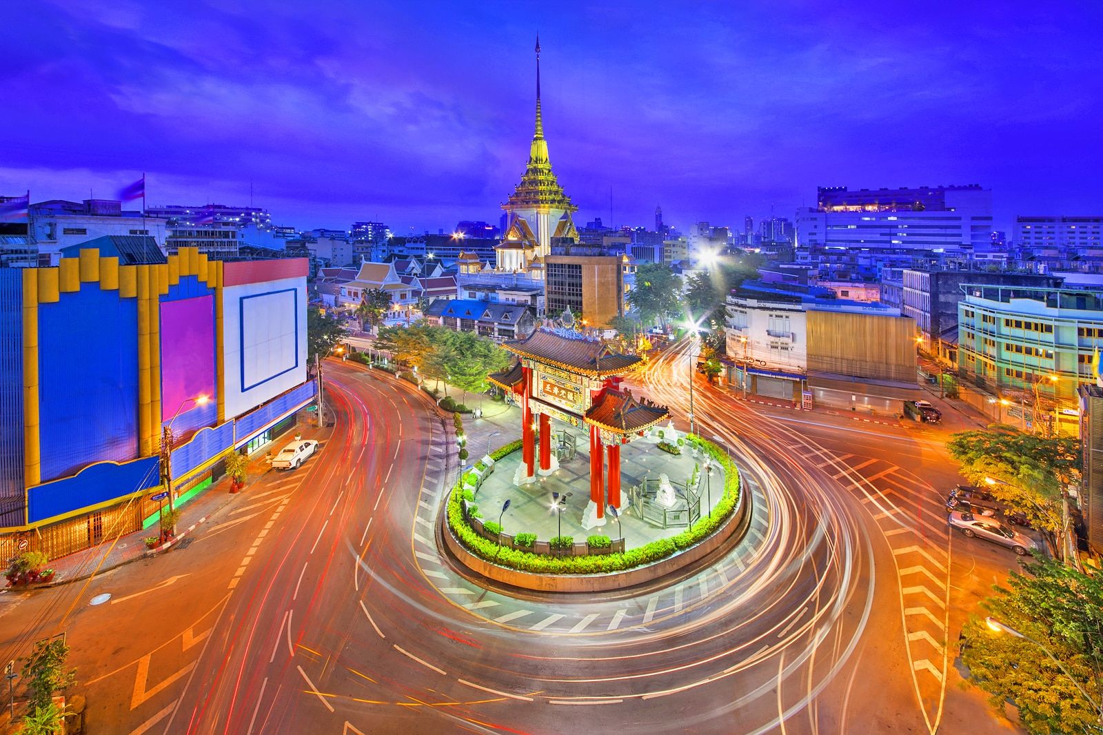 The China Gate at the western entrance to the Chinatown Bangkok is an ornate ceremonial gate. Built in 1999, the huge gate is actually called the King’s Birthday Celebration Arch, signifying the loyalty of the Chinese community to King Bhumibol of Thailand. It was inaugurated in time to celebrate the king’s 60th year on the throne.