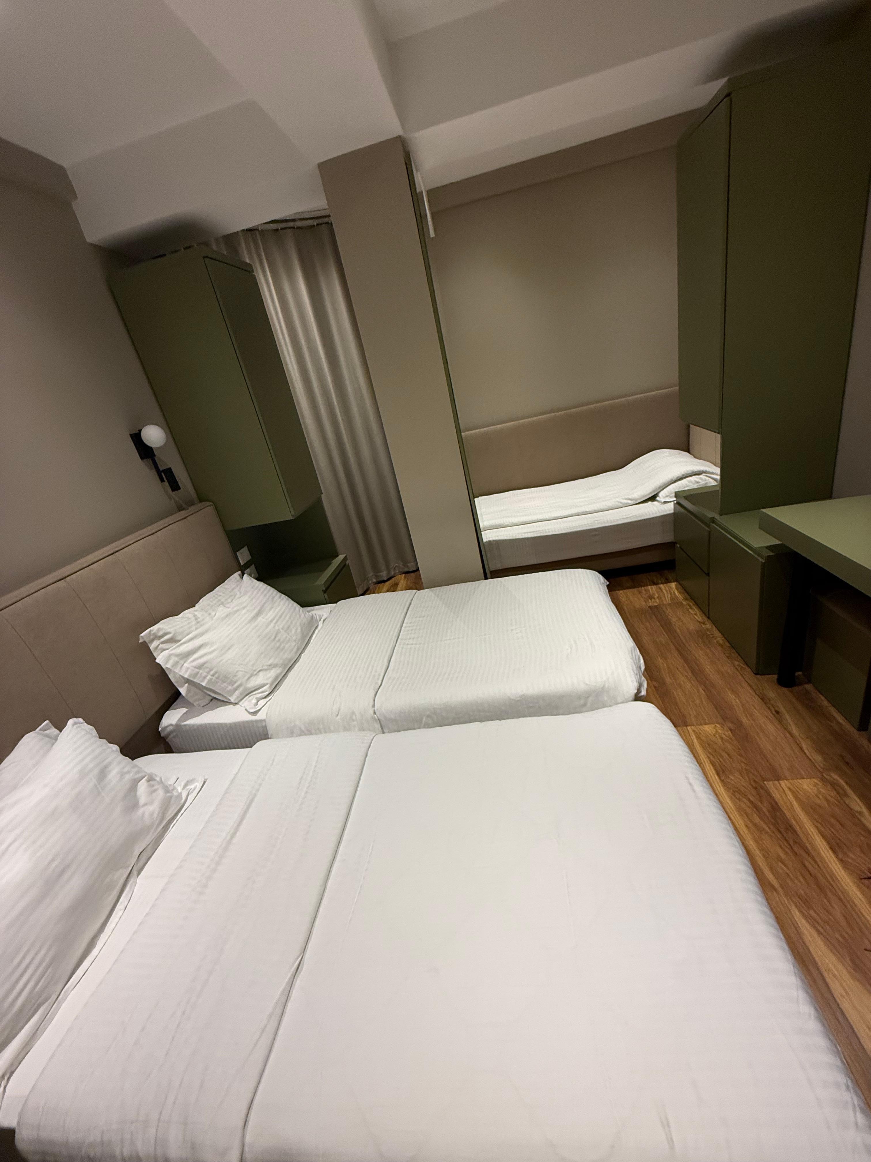 I had a really good stay here for a few nights. It's very conveniently located to be able to walk to all the main places in Tirana. The room was fine, well cleaned, the bed was comfortable but the pillows were all lumpy inside, so that took some getting used to but not a big deal really. Good pressure in the shower and the AC worked well. The staff were amazing, very friendly, I brought some tea bags with me as it's my favourite tea but there's no kettle in the room, however the staff were happy to use their coffee machine to make the tea for me whenever I wanted, so that was really nice and helpful. It was very quiet in the hotel, I didn't hear any noise at all. The staff printed my return boarding card (Tirana airport doesn't accept mobile passes), sorted my taxi and held on to my bag until it was time to leave. I would stay here again for sure.