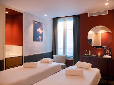 Spa Hysope Paris Opera possui 2 salas de tratamento incluindo salas para tratamento a dois. Os serviços incluem: massagens musculares profundas e tratamentos faciais. O spa está equipado com sauna a vapor. O spa abre em dias determinados.