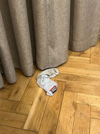 Det låg smutsiga strumpor på golvet när vi kom