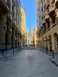O que me chamou mais atenção, contudo, foi o excesso de barulho, tanto fora quanto dentro do hotel. No quarto, as paredes eram finas, então era possível escutar ruídos vindos do corredor e até de outros quartos. Além disso, por estar localizado de frente à Catedral, havia muito barulho da rua, inclusive as badaladas do sino da igreja. Percebe-be que as janelas não tinham mecanismo antirruído.