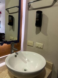 Sugiero tener por lo menos, una mesa porta maletas en cada habitación (solo tenĆamos una), y tener contenedores para reciclado. Las camas firmes y cómodas, toallas y sĆ”banas super limpias, hay toallas adicionales para la alberca. Y su caja de seguridad estĆ”n las baterĆas en el interior. Hotel muy bueno para familias. La alberca grande y con sección para niƱos pequeƱos. Nuevamente felicitaciones a todo el personal y a la administración del hotel por ser incluyente en la contratación. Mega recomendable.