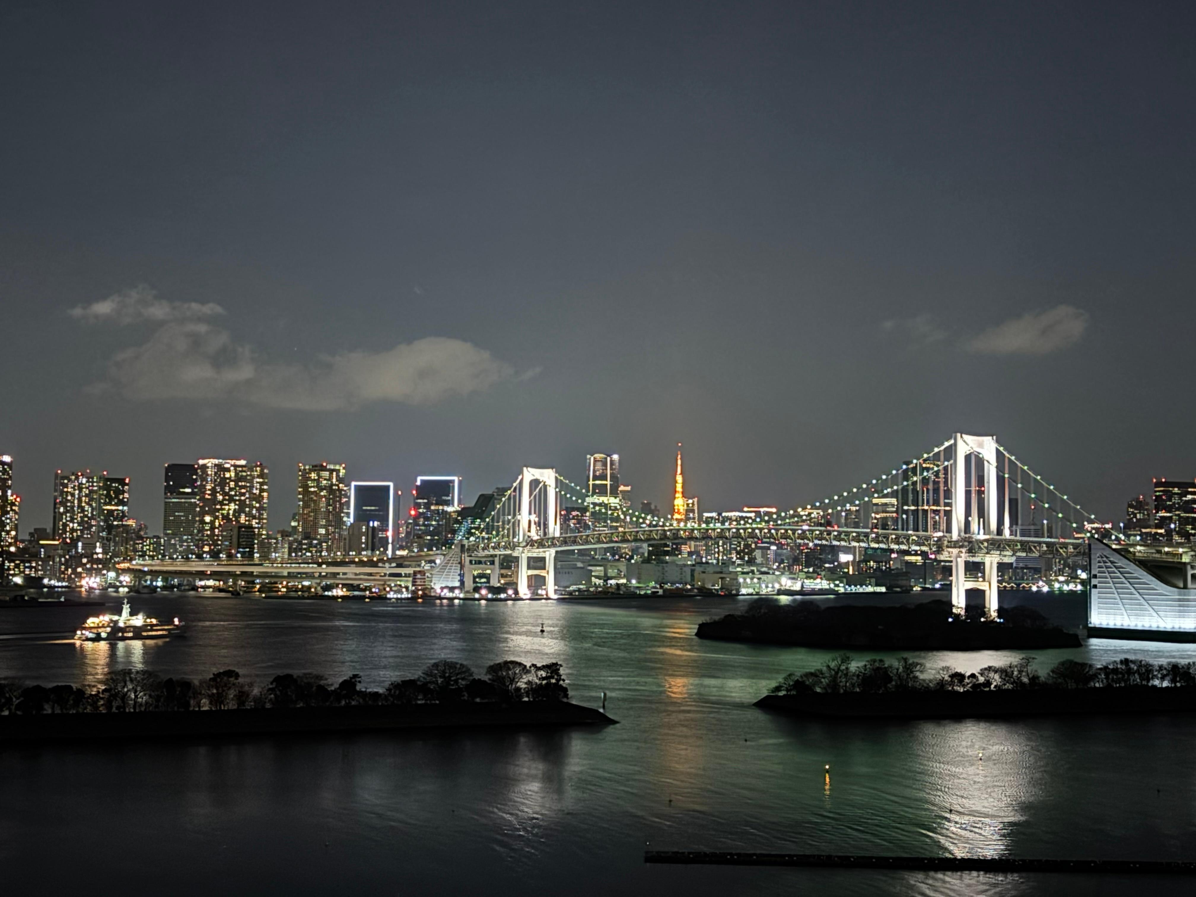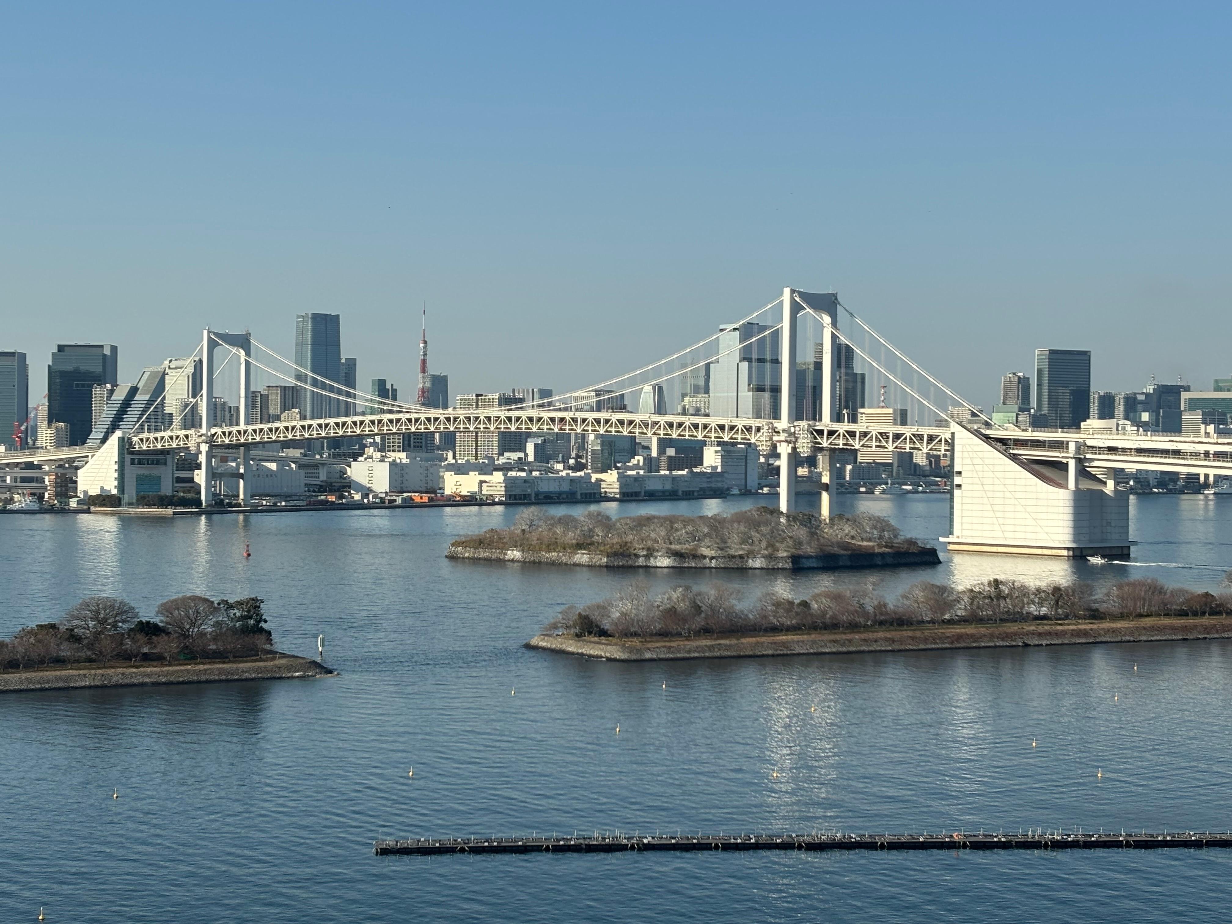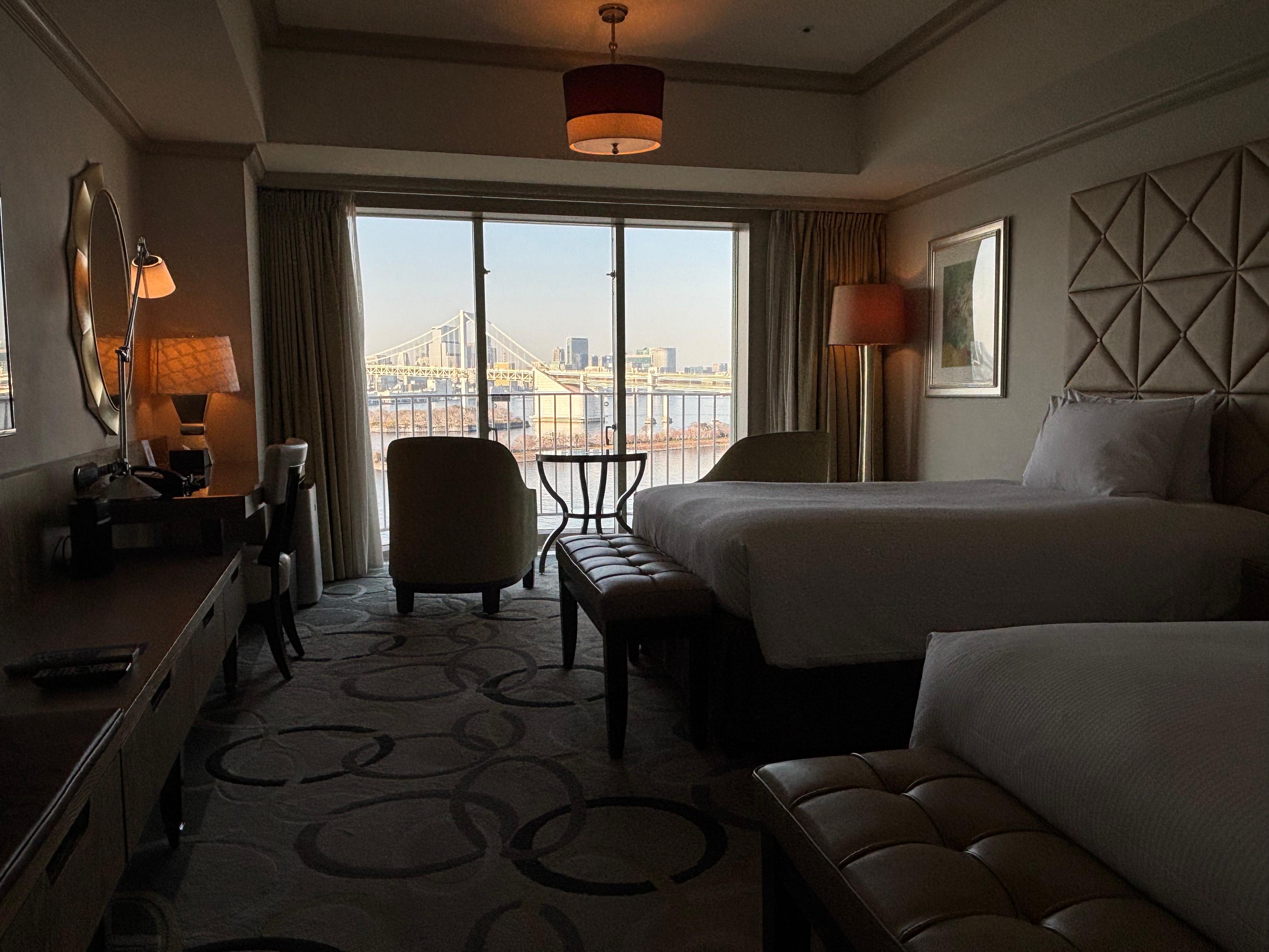 客房大小不錯,這次三人入住能一次能打開三個行李箱;房間有陽台能直接看得到彩虹橋的景觀很不錯;位置在東京算是比較不紛亂的地區,但海鷗線就在門口能快速到新橋,然後到東京其他繁華的地方;員工語言沒問題,服務的態度也不錯。唯一給人較差的地方是飯店地毯感覺老舊,有種沒清乾淨的感覺。