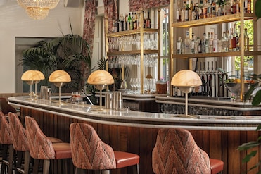 Maravilhe-se com a vista da cidade a partir do jardim deste hotel de luxo. Elementos de decoração selecionados combinam sofisticação urbana com espaços verdes tranquilos.