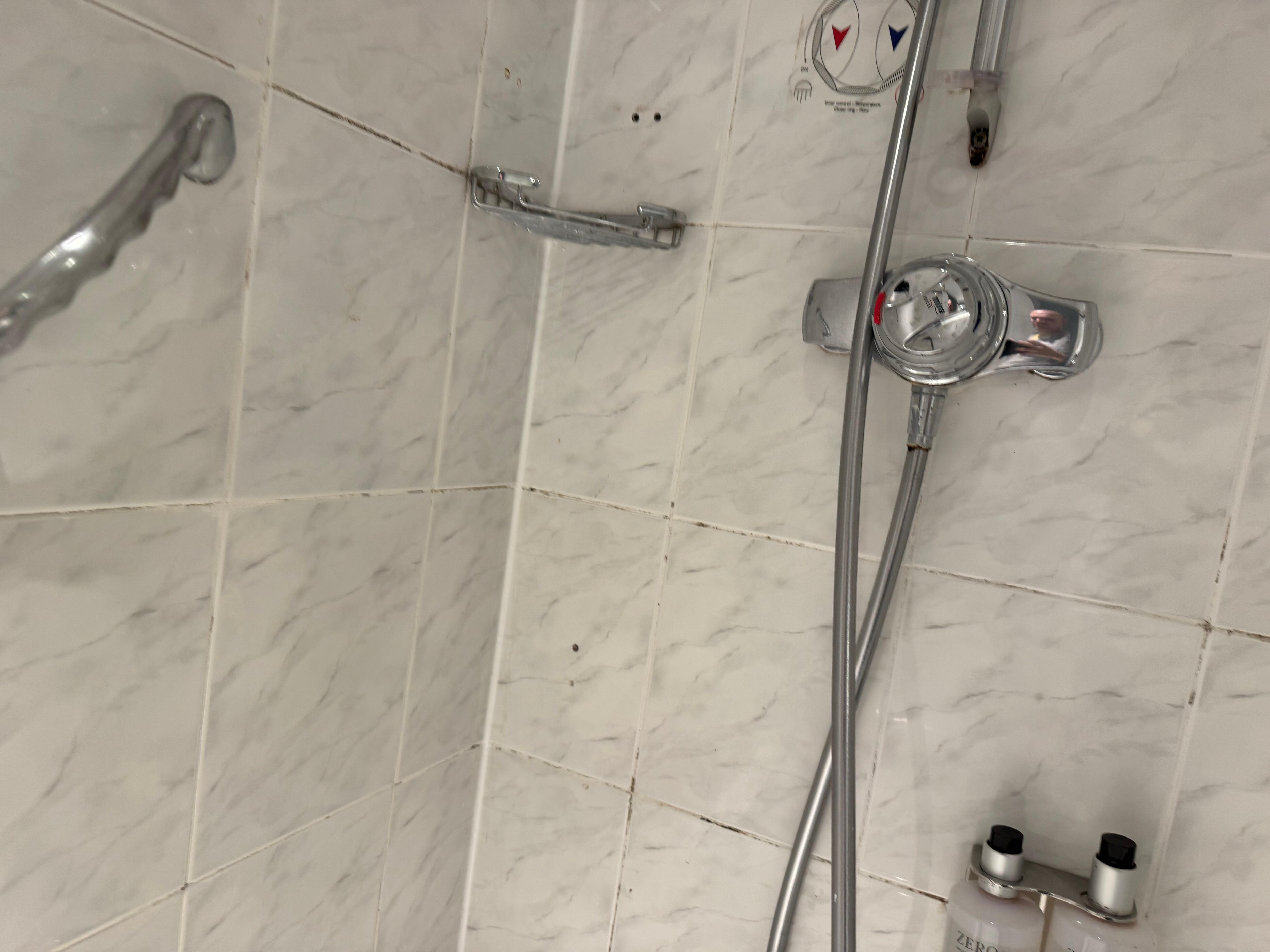 The room itself was okay in size but very dated. It looked like it hadn’t had a proper refresh in quite some time — bits of mould