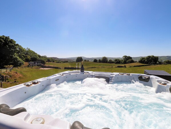 Sim. esta casa de campo possui uma banheira de hidromassagem particular.