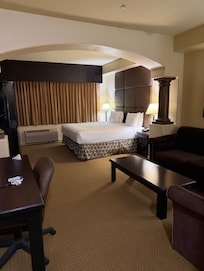I was lucky to get an upgraded room through hotels.com and enjoyed a larger room; the bathroom was huge with a separate soaking tub and shower. It was great to pop downstairs and grab a beer at the bar; friendly staff at the bar and front desk. I spent some time by the pool; it would have been nice if there were more sunny spots; it was really shaded compared to what the pictures showed online. Thankfully it was not a busy day when I was at the pool. It was the perfect location close to Fort Bliss to visit my son. I did not hear many airplanes being so close to the airport.