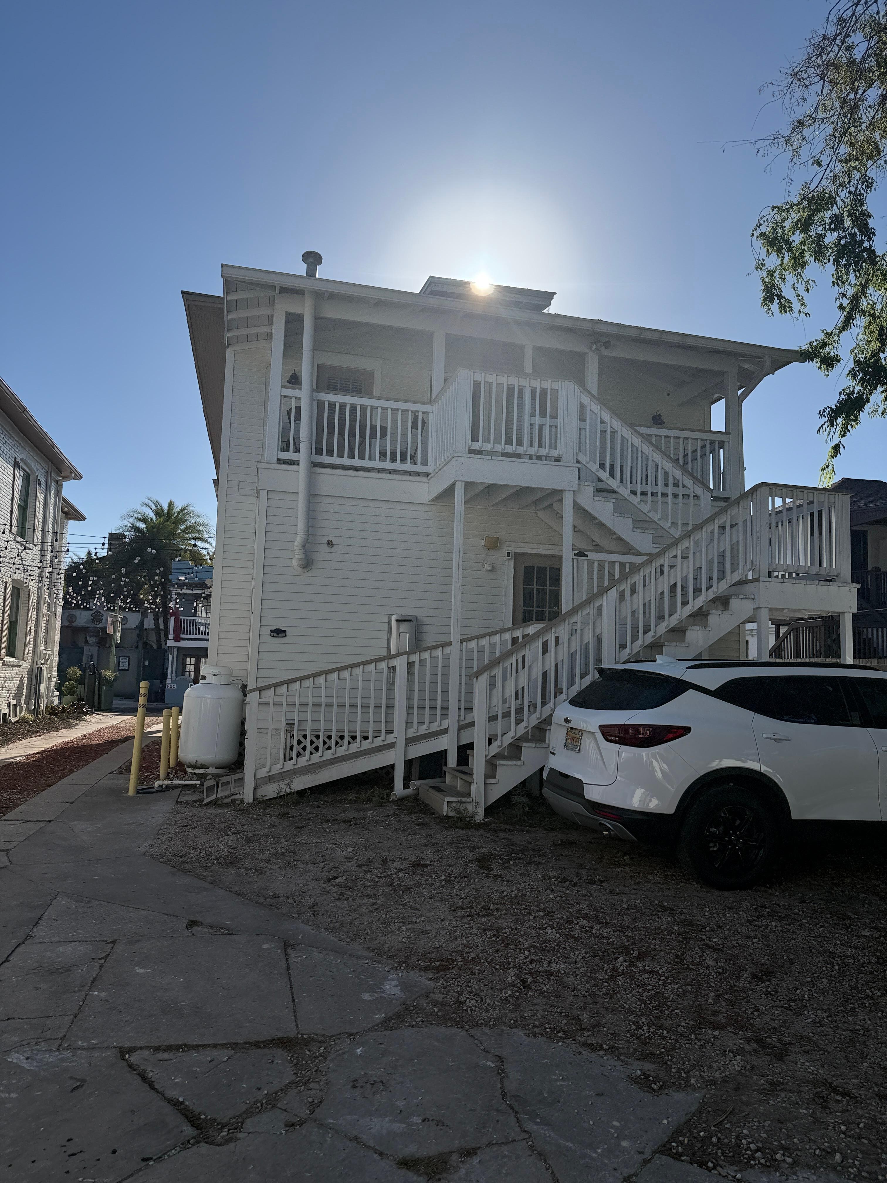 #16 These are the things that were wrong. When we got in town we had a tour booked, but we wanted to know if we could check in first nobody answers the phone so then I tried texting the number and no one answered until hours later we were already on our tour. We got into the unit which they end up telling us in our check-in instructions that we’re in the carriage house behind the main property. Granted this looks like two rooms that were built above a garage.. so we go inside. There’s no toilet paper. We texted immediately tried calling no answer still to this day. Have not gotten any answers on anything thankfully we were only there one night. The outlets in the bathroom did not work for my friend to blow dry her hair in there. My friend is older and doesn’t really use her cell phone for her things so she was kind of irritated that there wasn’t a clock in the room. The biggest thing is there are no AC thermostats in the rooms. They are locked up in the hallway so you do not have your own AC in your room thank God it was not Mid summer and we made out OK. The porch lights were shining through the bedroom windows because the blinds are all broken and messed up. The shower does not drain while you’re in there so it’s like you’re taking a bath. The property below you there are tons of debris and trash. It looks like a construction zone. Yes, they are under construction in the main building, but they have everything stored outside. It looks like a mess. I have pictures too!
