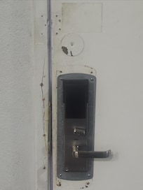 The desk woman was wonderful, give her a raise. The hotel room? Large, yes, but what good is that when they are too cheap to FURNISH it. Just huge, empty spaces with nowhere to sit but a desk, one hard chair. Tons of room for a cheap sofa, why not? You have to sit on the bed to watch tv. Walls were depressing Jail Gray and dirty white, very gloomy and very dark, not enough lighting. BOTH the front and bathroom doors had been kicked in and patched, with no attempt at repainting over the splits, breaks, and empty screw holes. The floor felt and was unclean, had to keep wiping our feet yo get in bed. Baseboards were filthy. Refrigerator looked from the 60's or 70's, VERY loud all night, microwave wouldnt spin. A new one is like $49, but no go, leave it broken.
