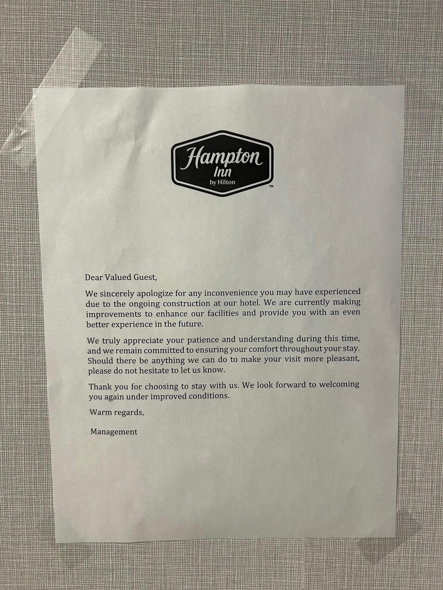 Upon checking in I mentioned to the guy at the desk how the building looked under construction, he said "oh, they're just painting..." this wasn't true, as I read a sign by the elevator admitting it was under construction and an apology for any inconvenience. By this time it was too late to cancel my booking. Had I known this was the state of the building, I would have booked a different hotel. This should have been in the hotels.com listing because in their signage, they knew full well this was the condition of their facilities. So immediately, it's an irritating scenario.