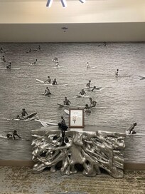 The hallways, elevator areas, bedrooms, and even the bathrooms are filled with large vintage photos of beach scenes from the 1960s. Every single image shows white Americans enjoying the beach during a time in history when people who looked like me—an African-American woman—were not welcome in many of those same spaces.