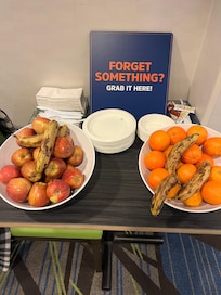 Luggage carts are falling apart. The only elevator will drop dust on you every time the door closes. The breakfast food was awful but the workers will make a plate and eat before the customers do, so I guess it wasn’t that bad. Just kidding, the food was horrible. The pancake machine was broken, the cereal was stale, eggs were overcooked as well as the sausage. The TV in the room would not turn off, so you have to unplug it to sleep at night. The box under the mattress was broken so you had to very carefully get in and out of the bed. The toilet would drain and fill constantly, even through out the night. There was hair in the shower, entire bathroom, and in the sheets in both beds. Staff spoke to us as if we were a burden. Family and I typically always find a Holiday Inn Express for all our travels, but this one was by far our worst experience.