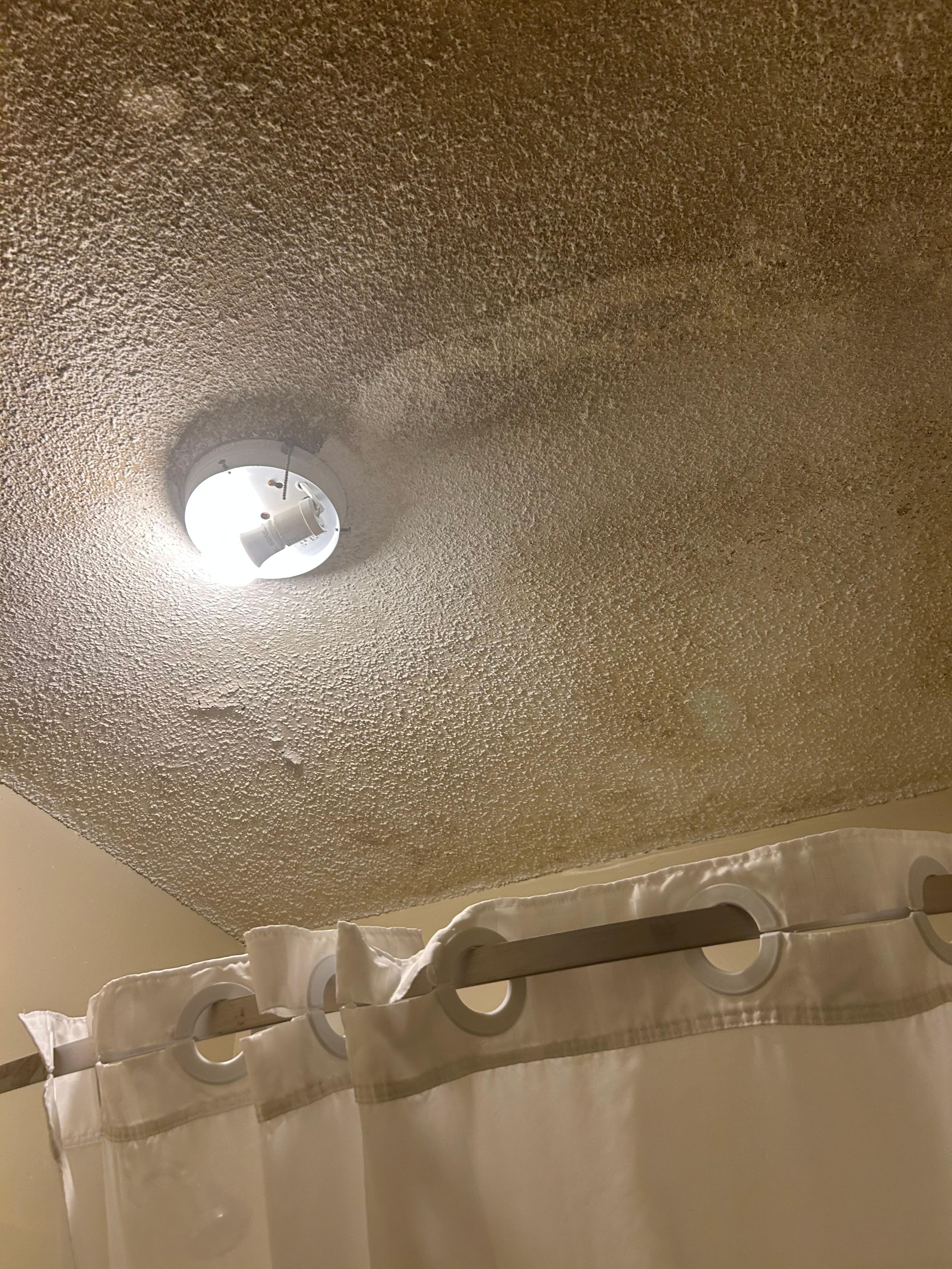 On the positive side, the front desk person was helpful and courteous, the bed was comfortable, if not clean, and the air conditioner and refrigerator worked. Overall condition of the room was pretty bad with damage to the walls, musty smell and an obvious water damage spot on the ceiling.