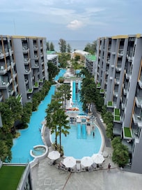 They have a children’s pool just outside the large lobby. Slides into the water for the kiddies. All the kiddies loved the pool and were out there all day long. It was fun to watch them.