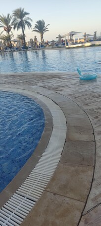 Nous avons eu la chance d'être surclassé et de pouvoir même choisir notre chambre (une suite avec 2 chambres dont 1 très grand lit double). L'accueil fut chaleureux. Le personnel dans sa majorité était agréable. Merci à Nawell du mini club qui a occupé notre petite fille. Le buffet proposait une bonne variété de nourriture avec au minimum une specialité tunisienne et glaces tous les soirs. Pour le goûter près de la piscine : pizzas, hot dogs ou crêpes.