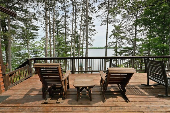 Esta cabana, em Stone Lake, possui cozinha e sacada