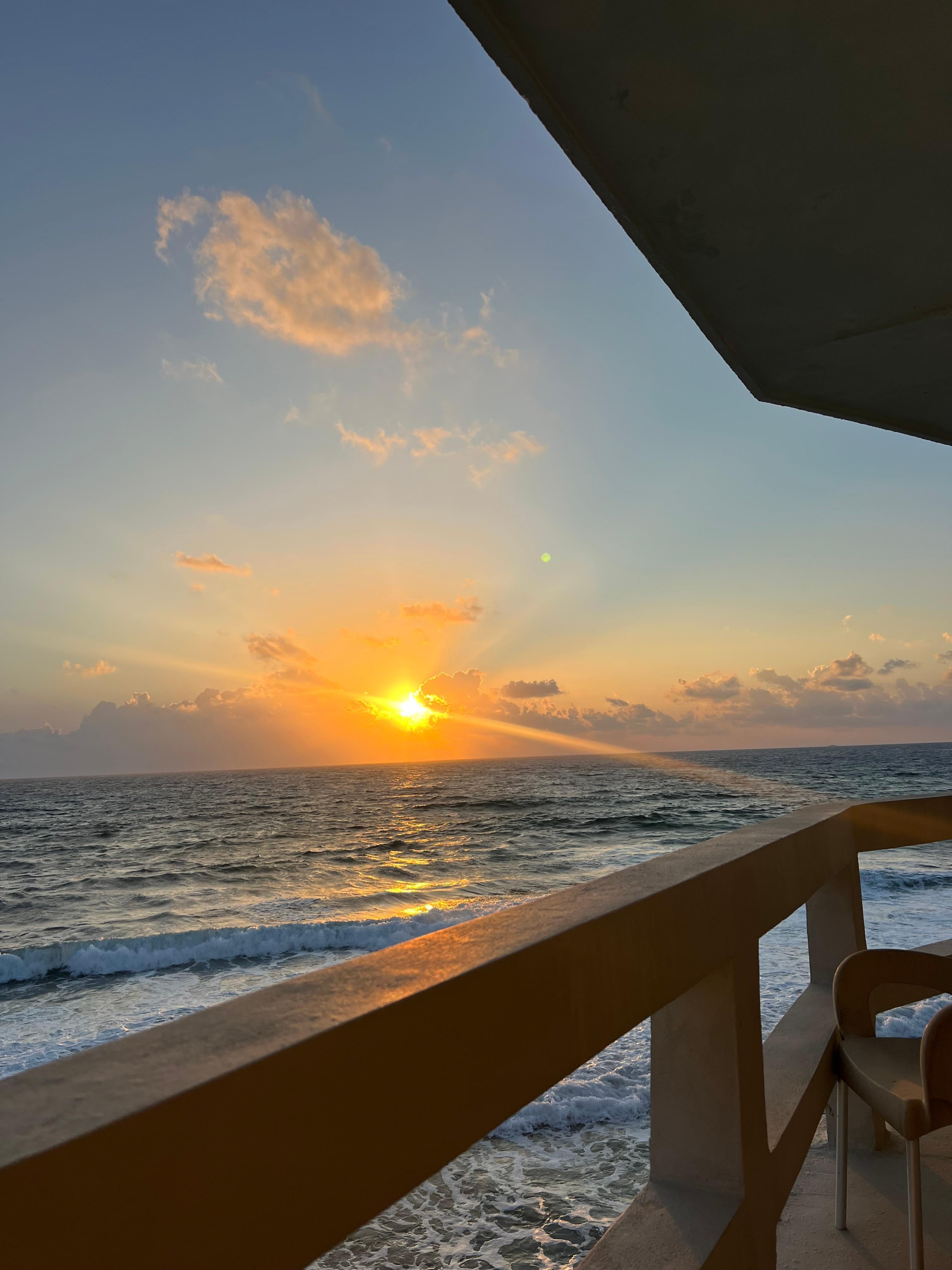 Respecto al Cuarto que me hospede con 1 cama tamaño King, el cuarto estaba muy amplio (al igual que su baño), el diseño del cuarto también lo sentí único por sus cuadritos en forma de mosaico en las paredes del baño, Piso blanco marmoleado y muebles de madera que le dan un toque fino, cama muy cómoda, y lo mejor de todo, el Balcón con 2 sillas y vista al Mar que es ideal para observar el amanecer (6:40-7:20).