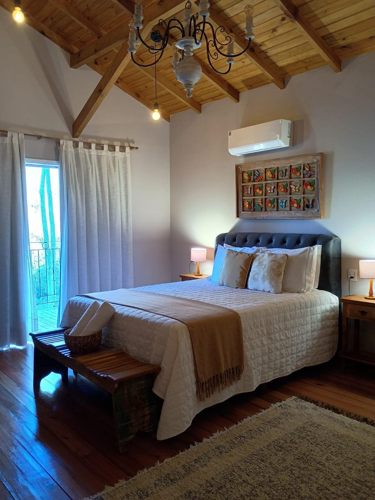 Havia um quarto com uma cama de casal e outro com cama de casa e uma de solteiro. Como estávamos em 3 pessoas, ficamos com bastante espaço.