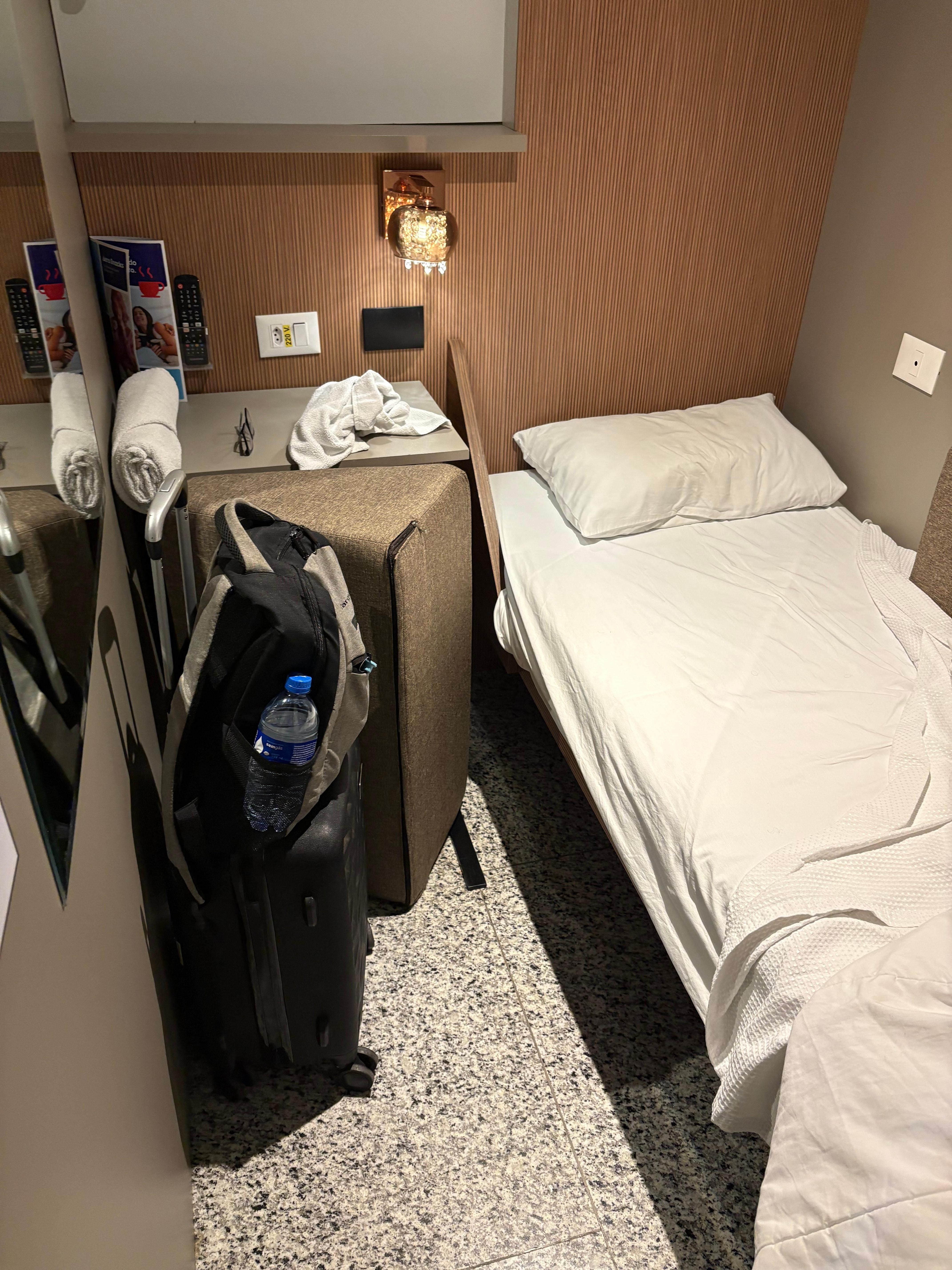 No café da manhã, observei problemas sérios de higiene, pois havia bichinhos diretamente sobre os frios, como presunto e queijo, o que é bastante preocupante. O sistema de ar-condicionado é central, por fazer parte da estrutura do aeroporto, e não permite regulagem individual no quarto. Ainda assim, talvez uma adaptação que possibilite aumentar ou diminuir o fluxo de saída do ar ajudaria muito no conforto dos hóspedes, já que passei frio durante a noite e tive o descanso prejudicado. Além disso, o hotel não disponibilizava Wi-Fi, algo básico atualmente.