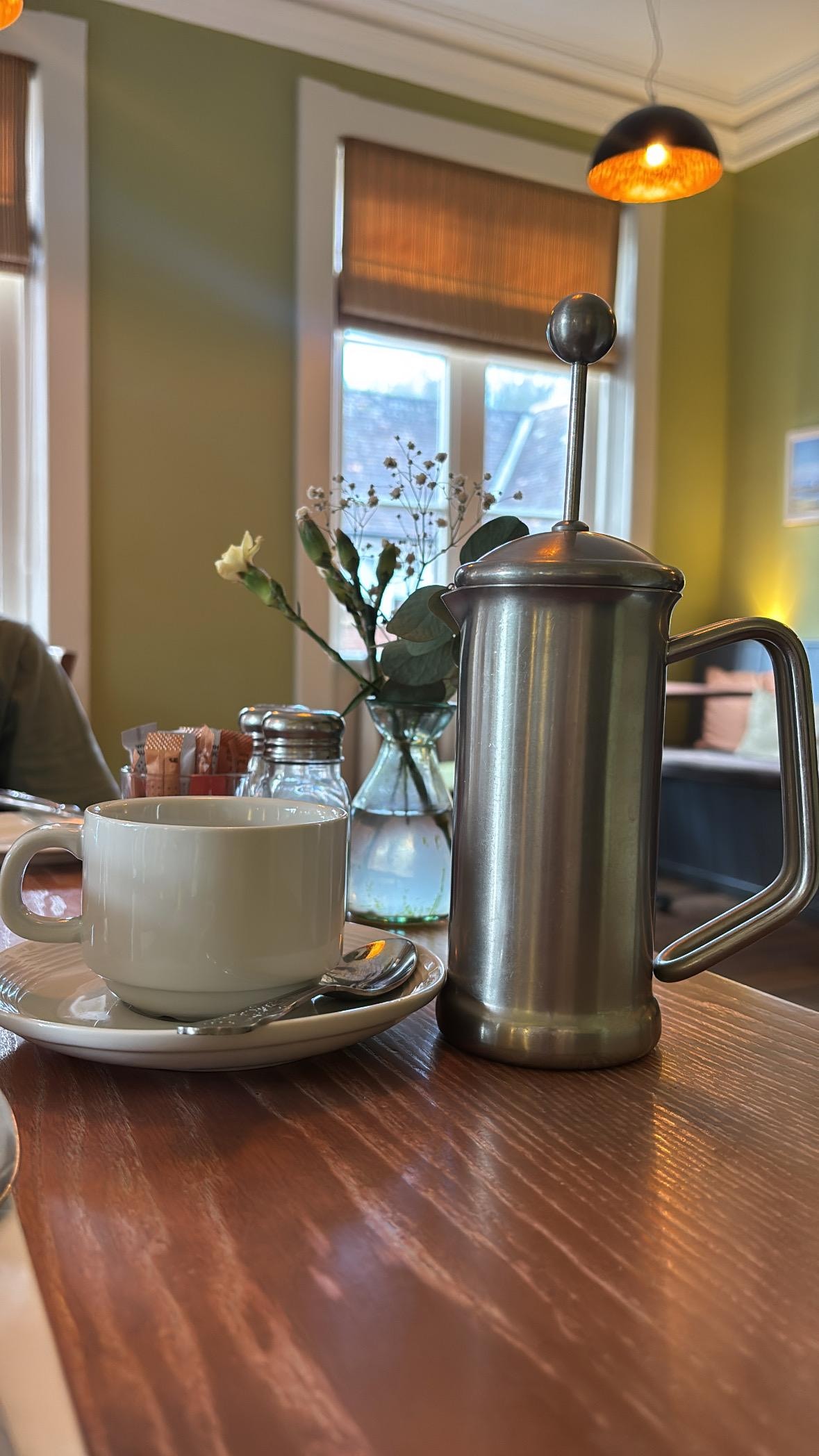 Good service, but overall very impersonal. Not once was there any interaction except basic necessities. Excellent dinner. Breakfast was good but portions very small. One slice of toast each and not asked if we wanted more or refills of tea and coffee.