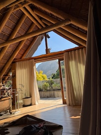 We stayed in the Kings Chamber, probably the coolest room I’ve ever stayed in. Views unbeatable, outdoor shower was liberating and the private treehouse and swing in the trees was the cherry on the cake. Don’t expect the service or facilities of a 5* hotel- this is a guest house (ex private residence, but feels like it’s plucked straight out of a movie). when the staff are around they are very attentive- they helped with our bags and cooked us whatever we liked for breakfast. Elle the manager booked us a massage in the wine cellar of the hotel (which is submerged in a Koi pond) which was an amazing experience. The honesty bar was a very efficient way of getting drinks. Please note Lunch/ dinner is not available without a 48hr pre booking, but there’s so many nice restaurants in the surrounding area and ubers are easy to get. There is also a well equipped communal kitchen you can use. The communal areas in the house are truly mesmerising- the attention to detail that went into building this property is mind blowing and the endless chill out areas, antiques and artworks around every corner really make for an interesting stay. The property is well secured and the underground car park very convenient. The pool area is very cool- it has a zip wire and some cool diving boards and is fresh water. Dont expect crystal clear blue water and waiters bringing you cocktails as this is not what this place is about. Beautiful place, 10/10 recommend for a unique experience