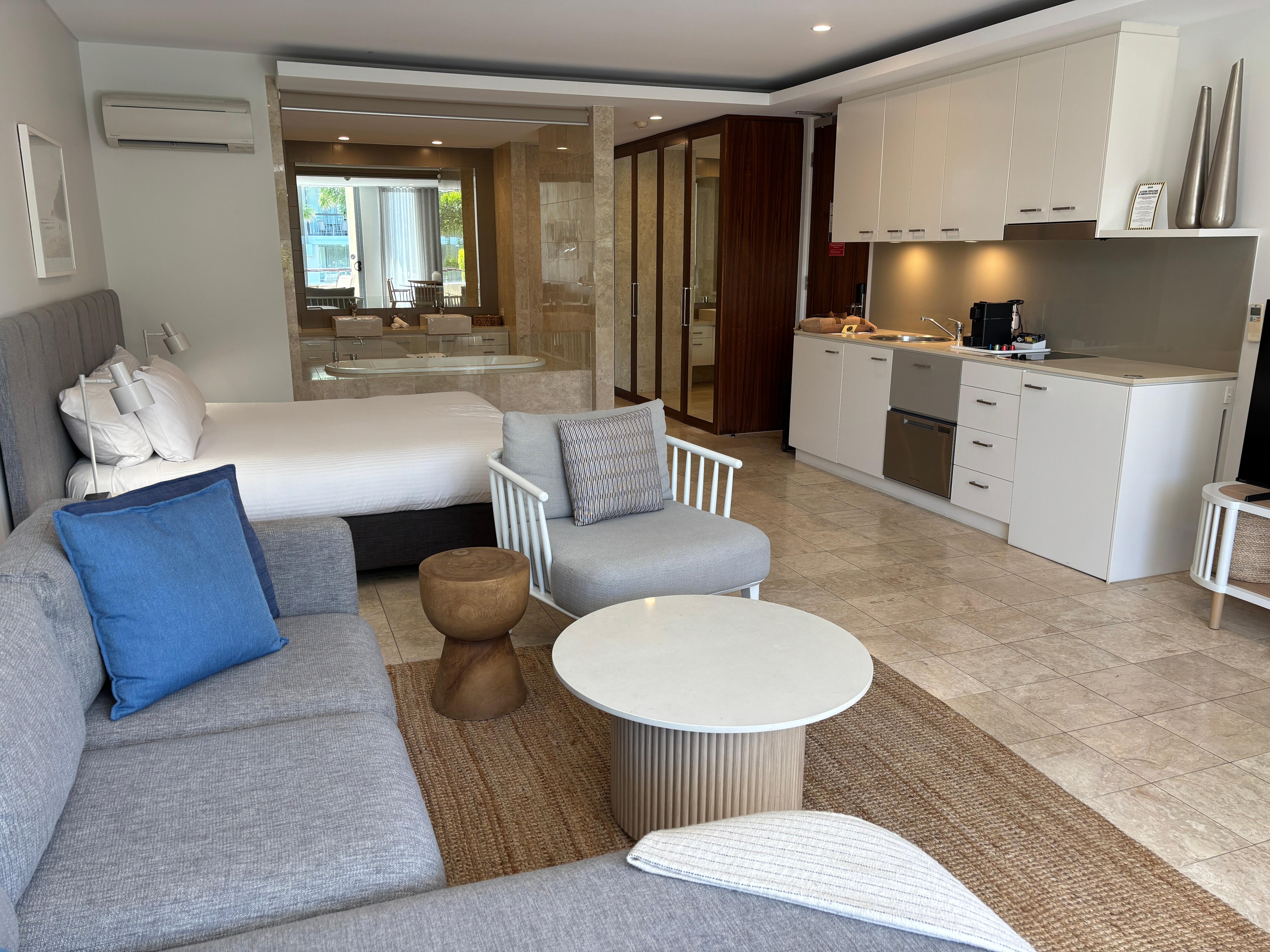 Esta propriedade tem espaços externos, como sacadas, pátios ou terraços, que podem não ser adequados para crianças. Se tiver alguma preocupação, recomendamos entrar em contato com a propriedade antes da chegada para confirmar se é possível acomodar você em um quarto adequado.