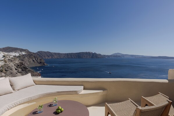 Esta casa de temporada possui banheira de hidromassagem particular interna e fica perto de Caldera de Santorini