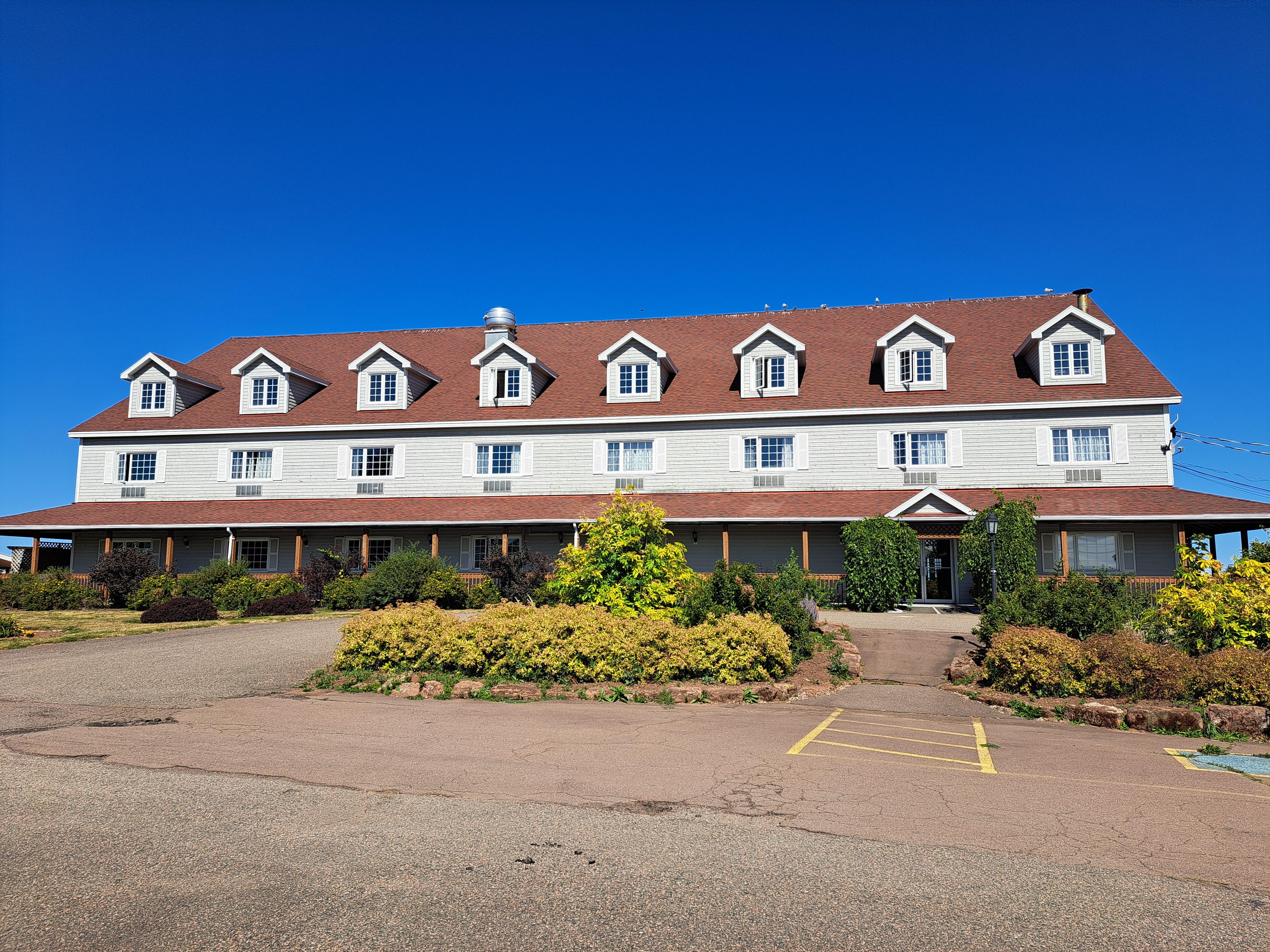 Disappointing, dirty. We stayed in main hotel for several nights; early cancellation policy involved stiff penalty. Staircase carpet had not been vacuumed when we arrived. Housekeeping, when they came in at all, made the bed at most, and never picked up garbage. Last day, we came back to find the room strewn with tissues and plastic bags all over the floor, whereas we had tidied up earlier. Towels were thread-bare, some torn; others had coloured, questionable stains. Furniture was stained and sticky. No soundproofing. Even outdoor pool was uninviting, with no deck chairs, no tables, no umbrellas. A general state of dilapidation, unfortunate considering the rooms were large, the staff friendly, and the location perfect for visiting PEI. We paid a lot of money, high price point, and feel we should be compensated for lack of basic hygiene and cleanliness. Management did nothing, claiming “third-party bookings” such as Expedia or Hotels.com.