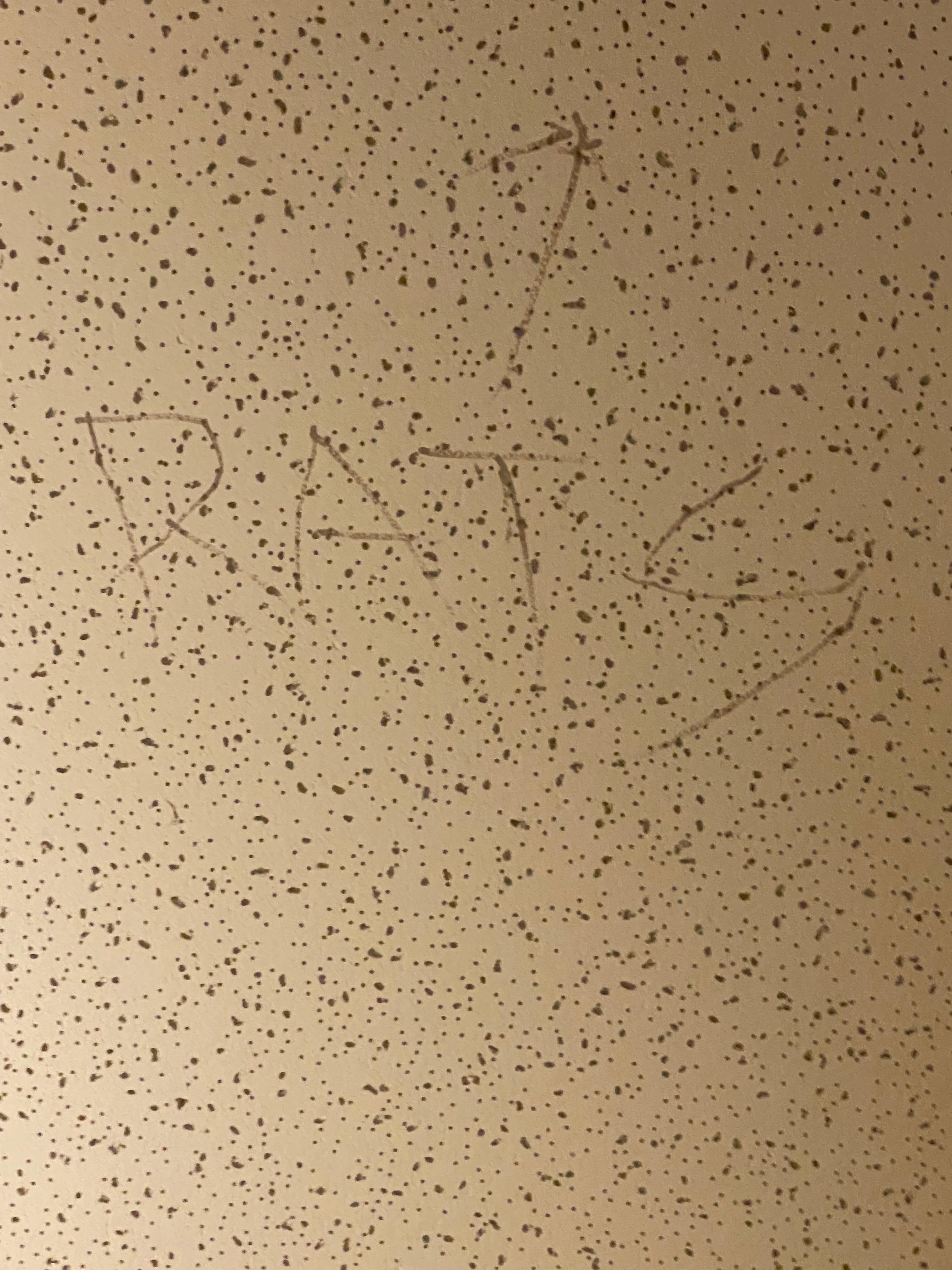 Wasn’t expecting to have to pay a deposit and have the room inspected before I left but they said all hotels in that area were that way. So that was ok but I figured since they were that picky the room it must be nice even though I knew it was a cheaper motel. Glad it was only for one night. As soon as we walked in we saw someone had written over the bed on a ceiling tile the word “rats”! I was sure hoping it was a joke. But they should have painted over it.