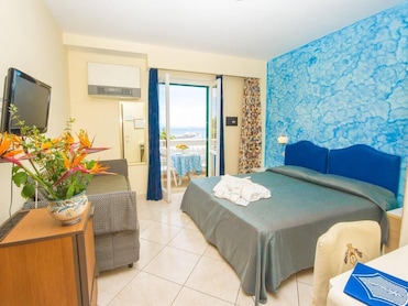 Hotel a conduzione familiare, posizione strategica, fronte mare, con una veduta mozzafiato. Buona colazione internazionale in terrazza a bordo piscina.