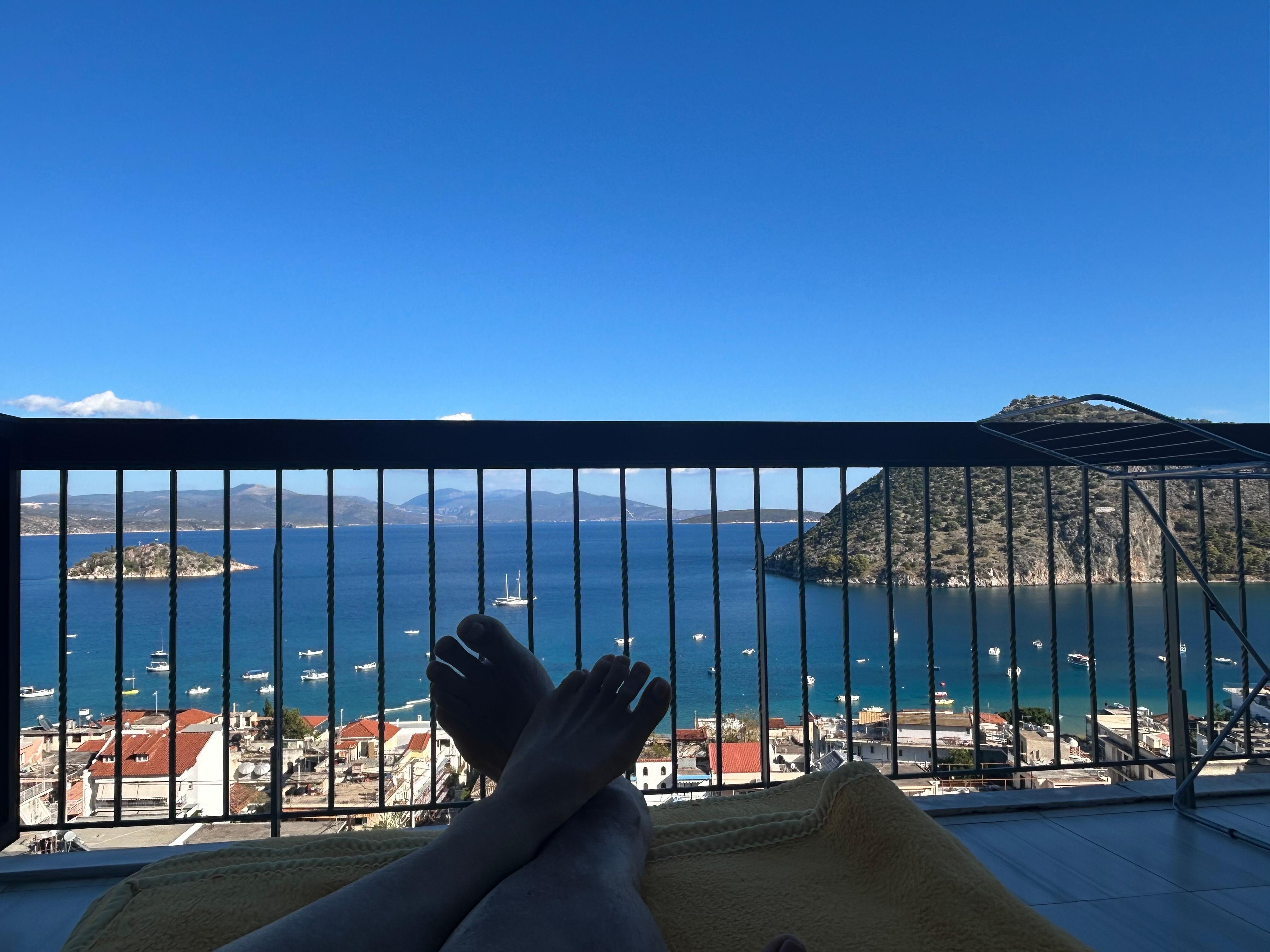 Quarto triplo, sacada, vista para o mar