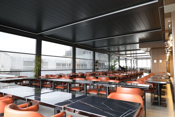 Café da manhã com buffet disponível todos os dias por uma sobretaxa, entre 7h e 10h30