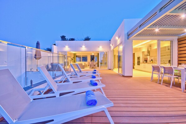 Há espaços privados ao ar livre em Extraordinary Villa With Private Pool & Steamsauna?