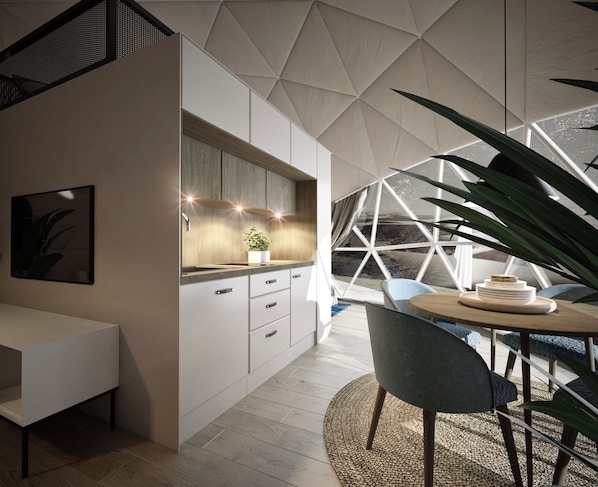Os quartos em Pilot Mountain Glamping Resort dispõesm de uma cozinha padrão ou uma cozinha americana?