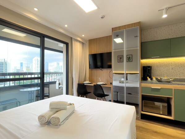 Esta propriedade tem espaços externos, como sacadas, pátios ou terraços, que podem não ser adequados para crianças. Se tiver alguma preocupação, recomendamos entrar em contato com a propriedade antes da chegada para confirmar se é possível acomodar você em um quarto adequado.