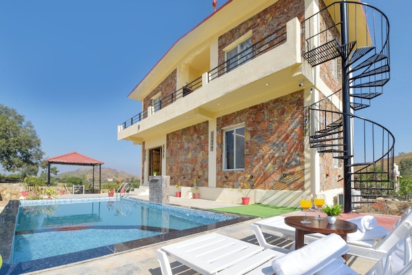 Alaya stays Colonel Retreat 3 BHK tem uma piscina externa.