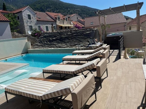 Villa de Blue 2 tem uma piscina externa e uma banheira de hidromassagem.