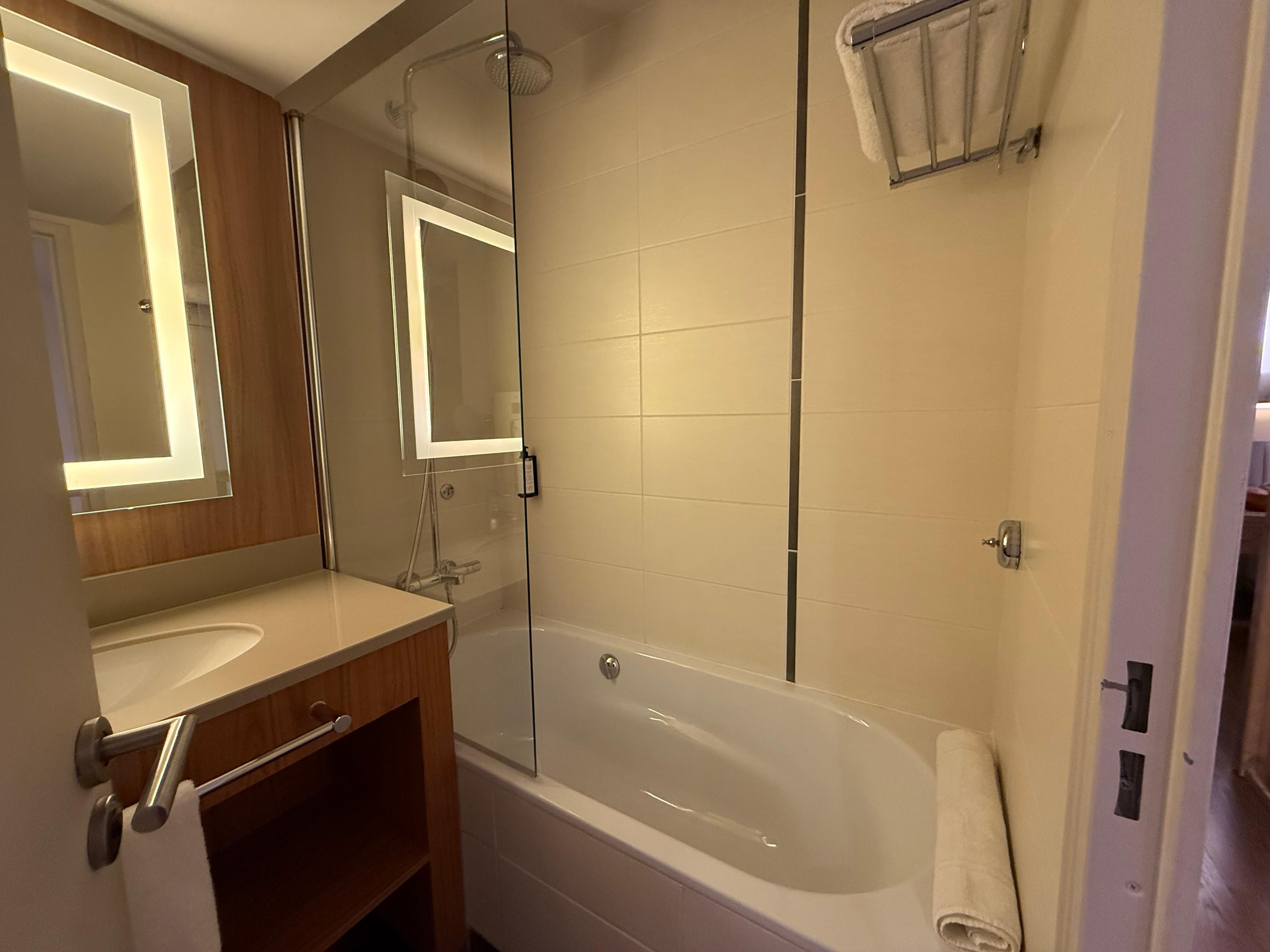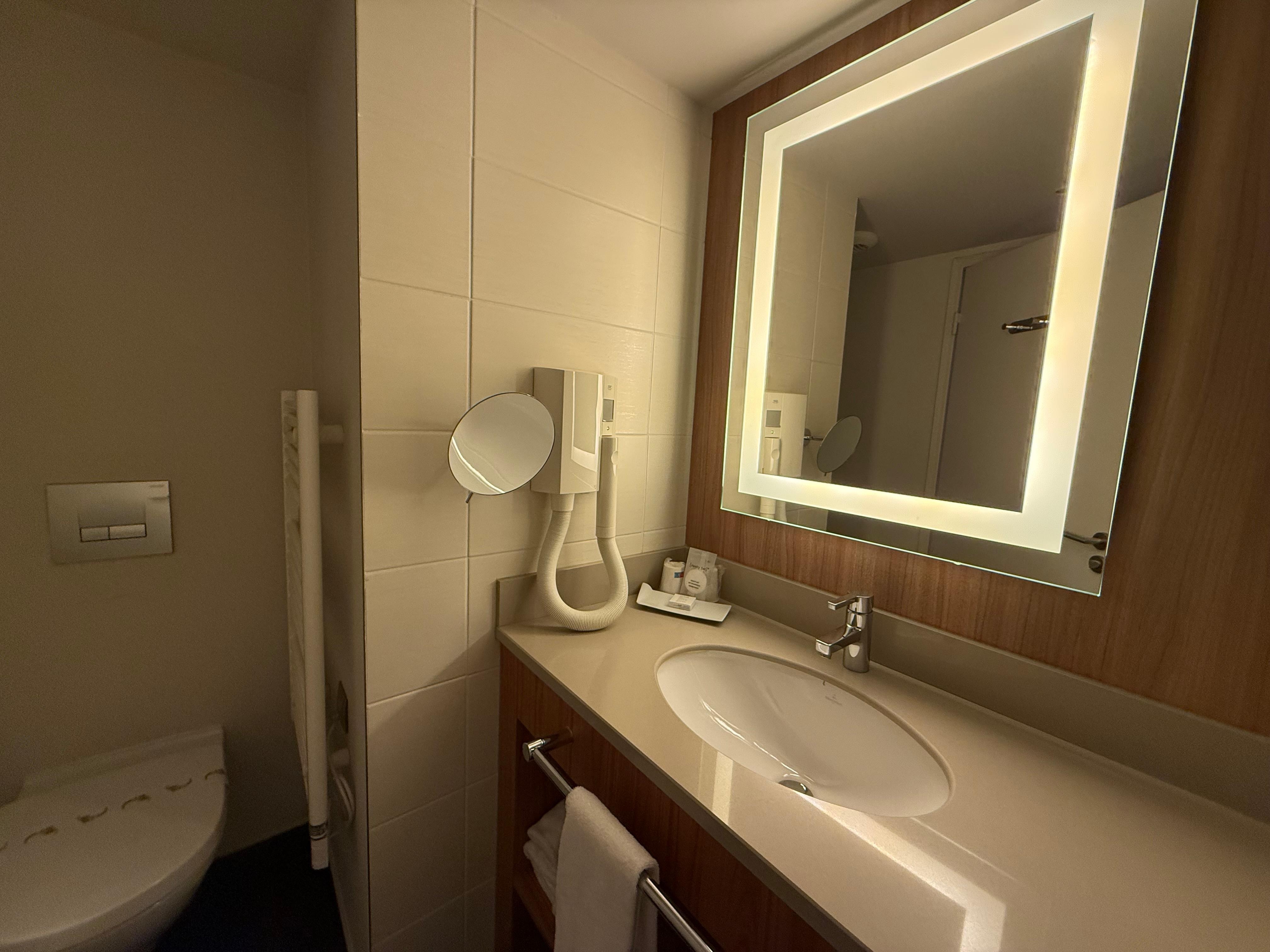 Maravilhoso, super atendimento,um ambiente delicado, clean de bom gosto desde a recepção até os corredores do quartos. Quarto confortável com camas macias e bons lençóis. O Kit da cozinha bem ajustado a tudo que se necessita de acessórios. Água disponível todos os dias em frasco mineral para número de ocupantes. Janelões grandes,antirruídos, cortinas harmônicas co a decoração. Casa de banho bem higienizada, e adequada às necessidades do hóspede. E caso precise de um travesseiro a mais, só solicitar que há um pronto atendimento. O hotel fica bem próximo ao Aeroville um shopping bem grande. E também ao aeroporto,facilita muito principalmente quem aluga um carro como nós fizemos.Adoramos! Sem dúvidas numa outra oportunidade mesmo que seja mais distante do centro de Paris de qualquer forma é tranquilo e possui estacionamento seguro.Aliás, o Hotel tem segurança máxima de acessos...