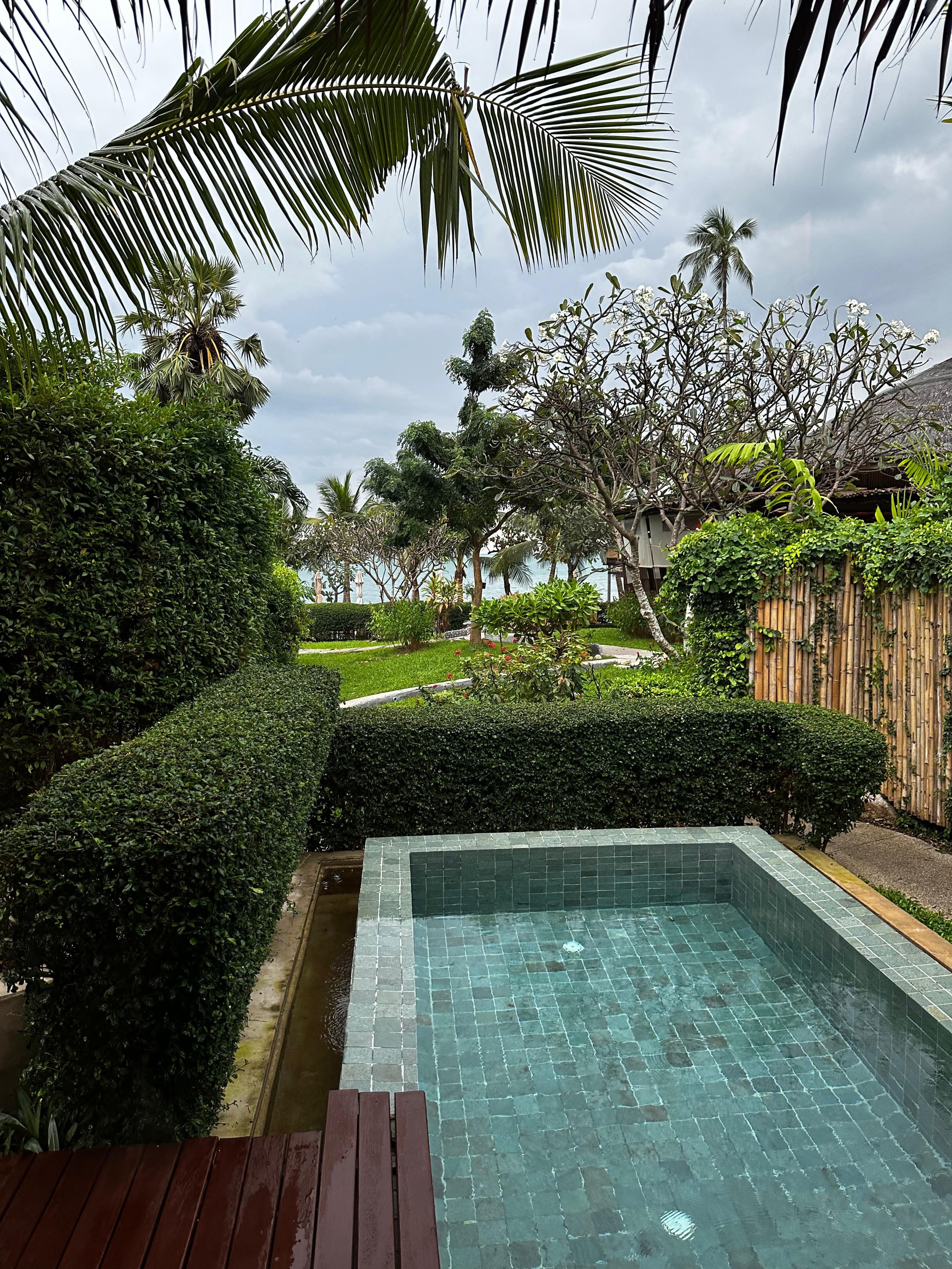 Quarto muito bom, com cama ótima com vista para o mar e com piscina privativa. Excelente se a piscina principal estiver lotada (o que acho pouco provável).