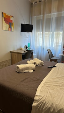 O quarto é agradável, tem uma varanda enorme bem bonita , camas razoáveis, roupa de cama e toalhas boas , e banheiro aceitável .