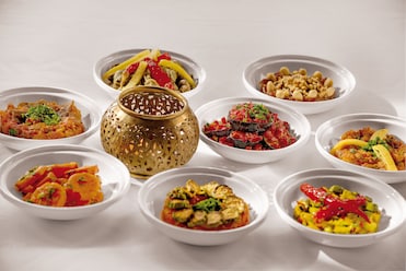 Sabores franceses e marroquinos encantam em três restaurantes com vista para a piscina. Um café e opções de refeições privativas completam o cenário.
