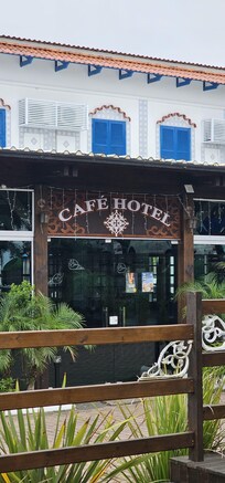 A localização do hotel é excelente. Por fora, um local muito bonito. A varanda da área do café da manhã é sensacional.