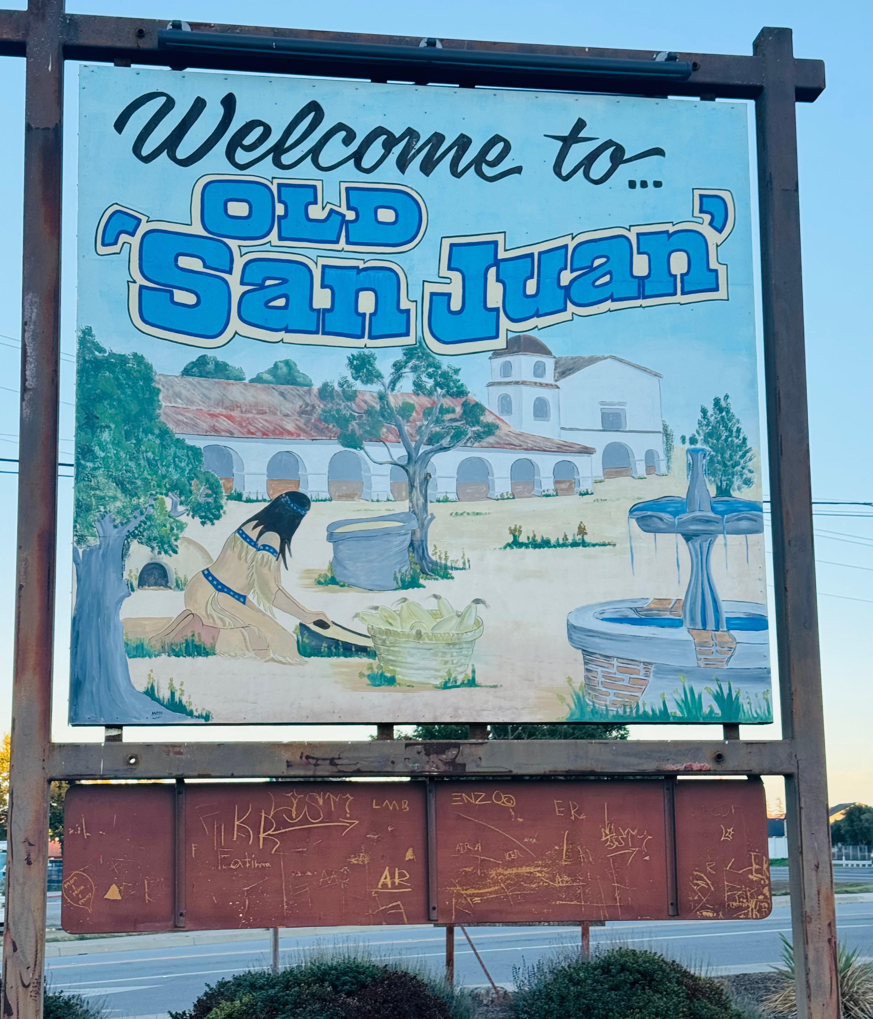 This hotel has a cool retro-Spanish theme. There's a vineyard and olive trees in the courtyard. There's also a cozy fire pit shielded from the wind that Cathy at the front desk kindly lit for us. The 156 is a major road, but there is a signal light and pedestrian crossing. From there, it's a short walk along the Alameda to the historic part of town. There are artisan shops, restaurants, the old mission, a grocery store, and a coffee roaster. The coffee roaster also serves food and beer. In the other direction, you can drive up Fremont peak. There's a state park at the top with camping and views overlooking Salinas. It's about a one-hour drive to Pinnacles National Park. This hotel is set up as a venue for weddings and similar gatherings. There wasn't anything like that going on during our stay. The neighboring property has goats and chickens. The bathroom window effectively blocked the sound, and it was noticeable but not disturbing with the window open.