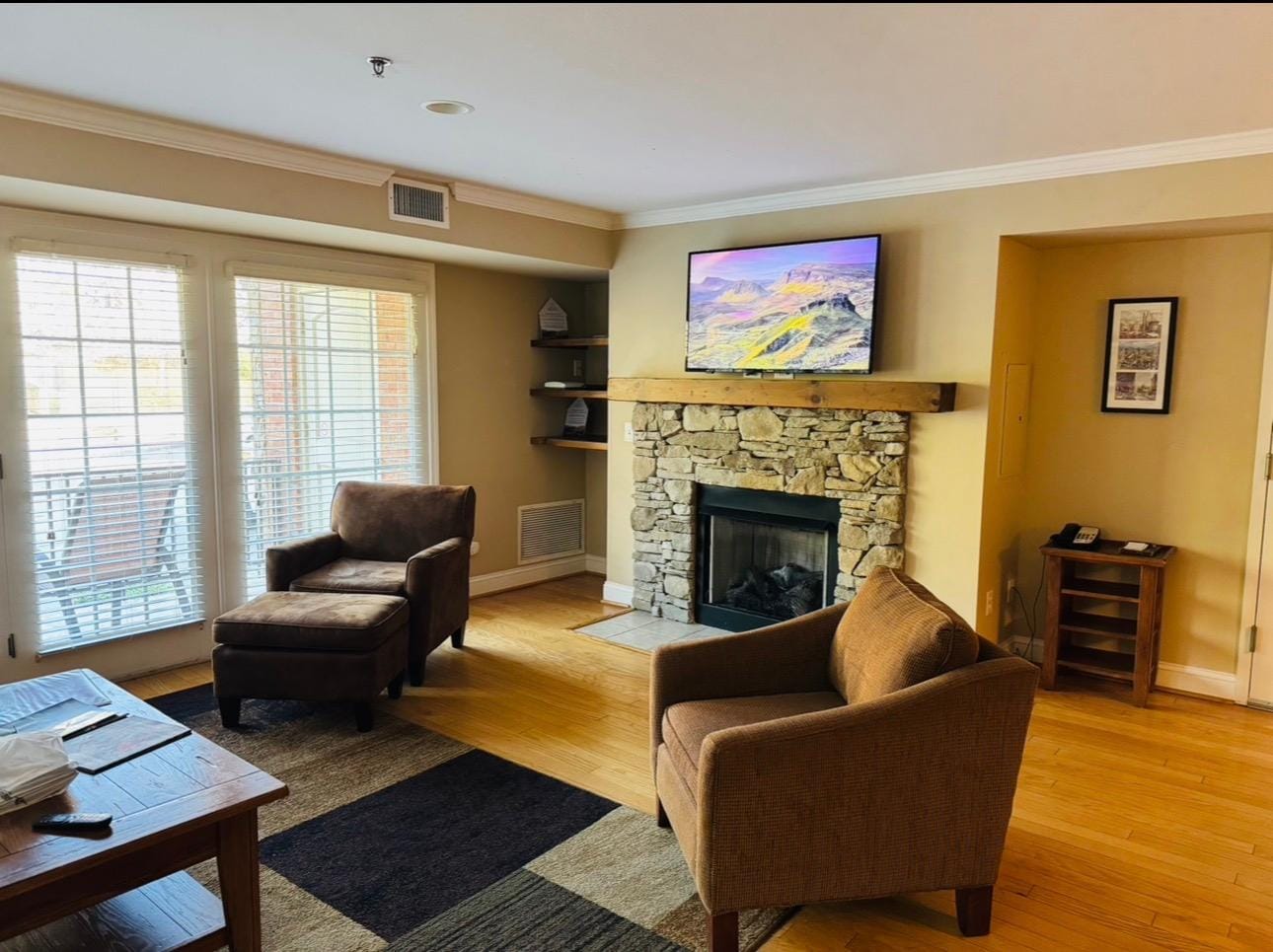 Cons: we had no housekeeping the entire stay eventhough they state you will get fresh towels and trash removal daily. First day we returned and noone had come by, day two same thing. Called first thing in the morning to advise and also our fireplace was not working. We were assured they would come by. Same story, noone showed up. They sent the front desk gentleman Deonte on two separate nights to bring towels and remove trash. He also got the fireplace to work. He was very courteous (he also checked us in) and apologetic.