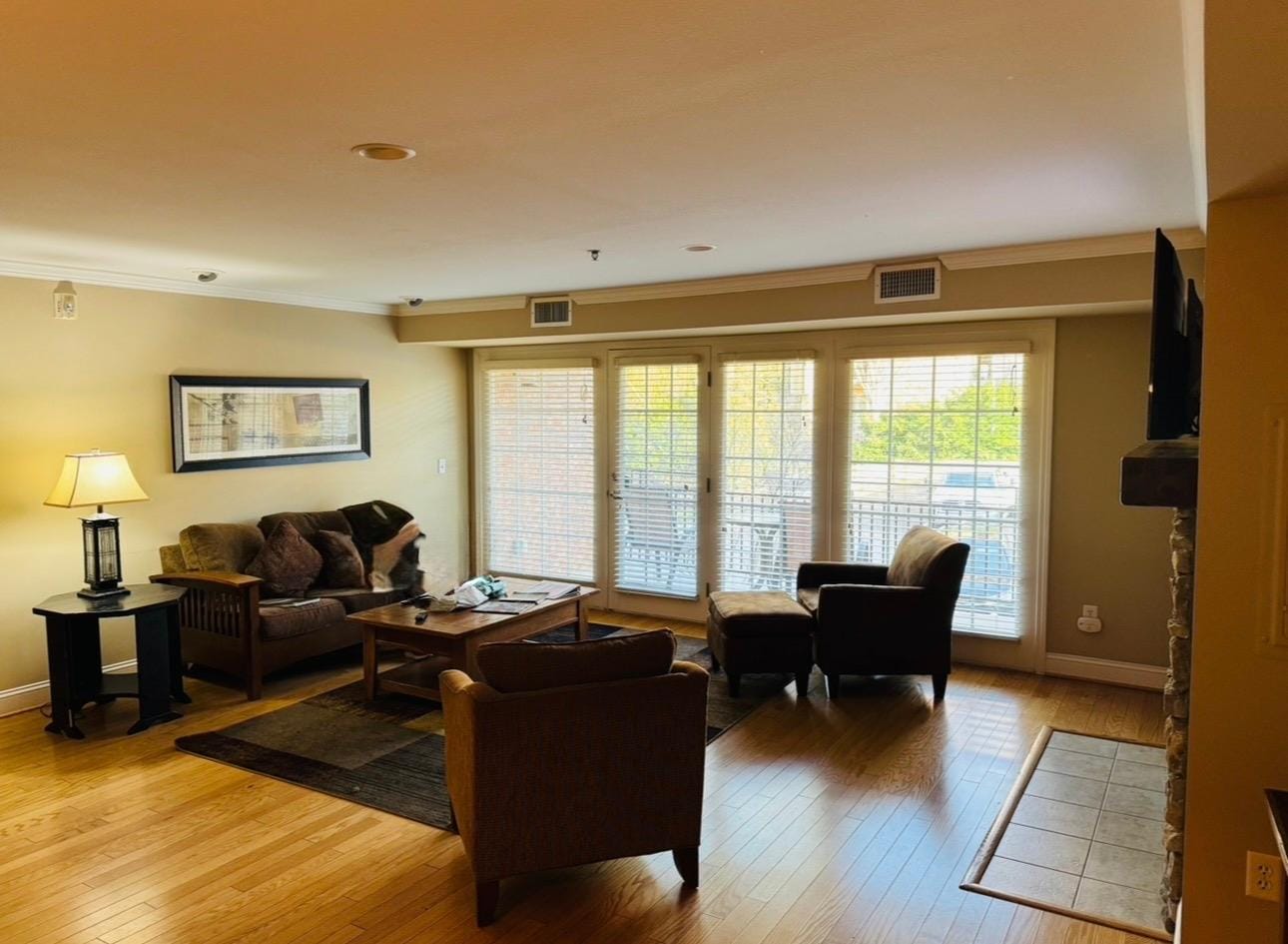 Pros: Room configuration is great, apartment style we had a 2 bed 2 bath, full kitchen living room and balcony. Gas fireplace. Location is good.