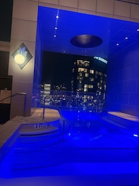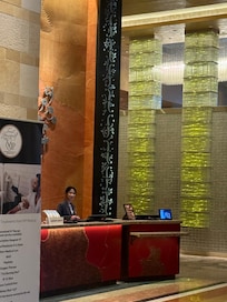 every member of the staff was exceptional—from parking to front desk to hostess at roof top bar. The hotel lobby is impressive. we received a complimentary room upgrade with nice views of the city. first rate experience.