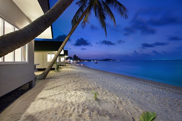 Prachtige nieuwe bungalows pal aan het strand van het gemoedelijke MeaNam Beach. Moonrakers bestaat uit 4 nieuwe moderne bungalows die van alle gemakken zijn voorzien. Compleet met ingerichte keuken, maar die zal je niet veel gebruiken want er zijn heel veel lekkere en betaalbare eetgelegenheden op loopafstand. Maar voor gezinnen met kinderen is het altijd handig als je beschikt over een magnetron en een goede koelkast met vriezer, toaster, waterkoker en een gasfornuis om toch kleine maaltijden/ontbijt te kunnen maken. De bungalows zijn ruim en beschikken over 3 goed werkende airco's 1 in elke slaapkamer, deze functioneren altijd, en één in de woonkamer die aangaat wanneer de sleutel in de betreffende houder wordt geplaatst. Verder 2 ruime slaapkamers met goede bedden en 2 badkamers. Een ruim, (niet overdekt) terras met parasol en meubilair. Goed ingerichte living en een eethoek. Kortom, een heerlijk plekje voor een ongedwongen, rustig strandverblijf en wil je de drukte opzoeken, dan is dat een korte taxirit verwijderd. Taxi's bestel je eenvoudig bij de buren