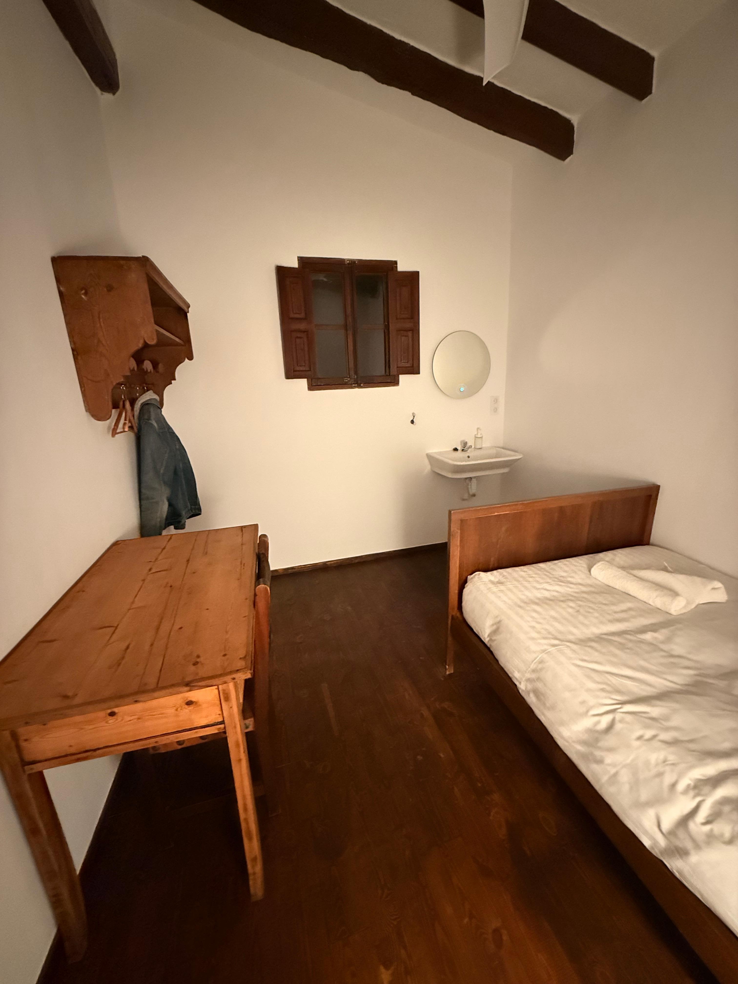 While the communal areas are attractive they're not very practical as some chairs are decorative and not to be sat on, and though the staff were fairly polite i rarely saw them. There were far more negatives than positives - my room was on the third floor and was tiny, the width of the room was not as wide as i am tall (and I'm not even very tall - not an exaggeration) and it was only twice as long as my small bed. No wardrobe, just a bed, a little desk, a sink. The whole time building works were going on in the room next door that started on average from 8.30 am until 7pm, though some days it was earlier and later. Every time anyone used a sink or shower, the pipes in my room would bang loud enough to wake me up. The nearest shower was two floors below me - only one for rooms in the double figures so a long wait every day to shower - and the nearest toilet was on a different floor to the sink so you couldn't even clean your hands after without a trip to a different floor. In the four days i was there, no-one even tried to clean my room or change my towel, and i couldnt find anyone to discuss this. It would have been fine for a budget stay, but i paid a premium price, and i felt robbed, because it wasn't worth it. When the builders were working on the room, they were in front of a window that looked into my room, that was covered in see through plastic, i could see them from bed - I did ask to change rooms but was offered an even smaller room, so i just endured it all.
